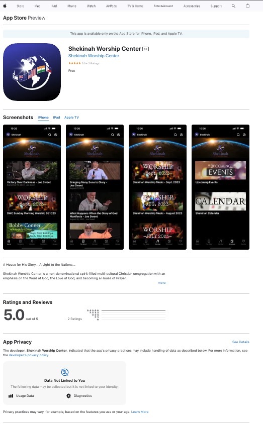 You can also look for us on Roku and AppleTV.  Simply search for “Shekinah Worship Center“.